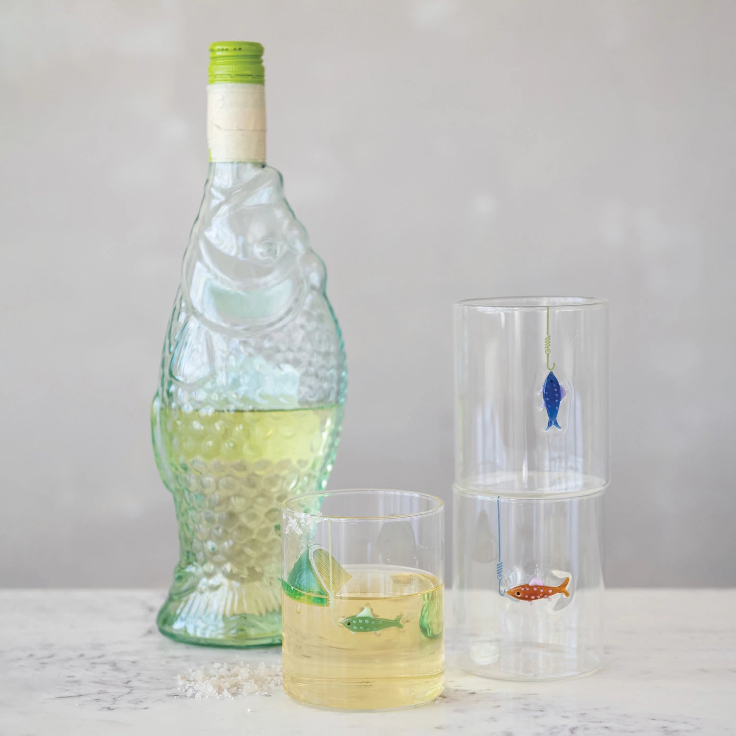 Enjoy your favorite beverages in style with this 12 oz hand-blown drinking glass, featuring a playful fish on hook design. Each glass is uniquely crafted with vibrant multi-colour patterns and is available in three distinct styles, making every piece one of a kind.