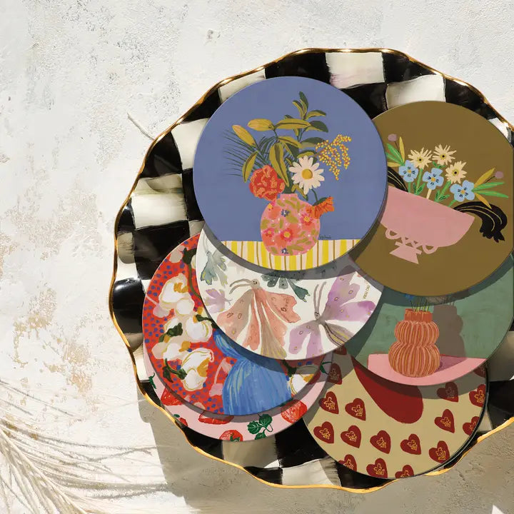 Add a splash of whimsy to your tabletops with the Lazy Daisy Coaster. This coaster features a charming printed design of a daisy mixed floral bouquet in a vase, perfectly capturing a playful garden vibe. Protect your surfaces in style while brightening up any room with these delightful, eye-catching accents.
