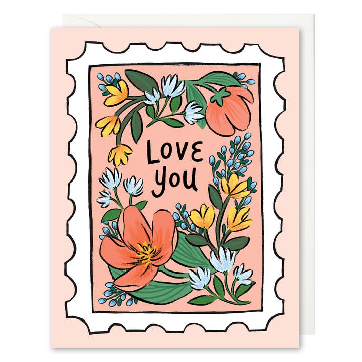 A playful card with colorful flowers and “Love You” to share your sweet feelings.