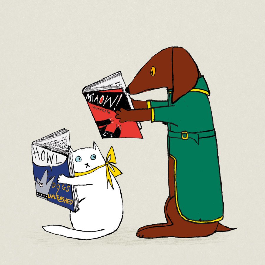 Dog and cat reading.
