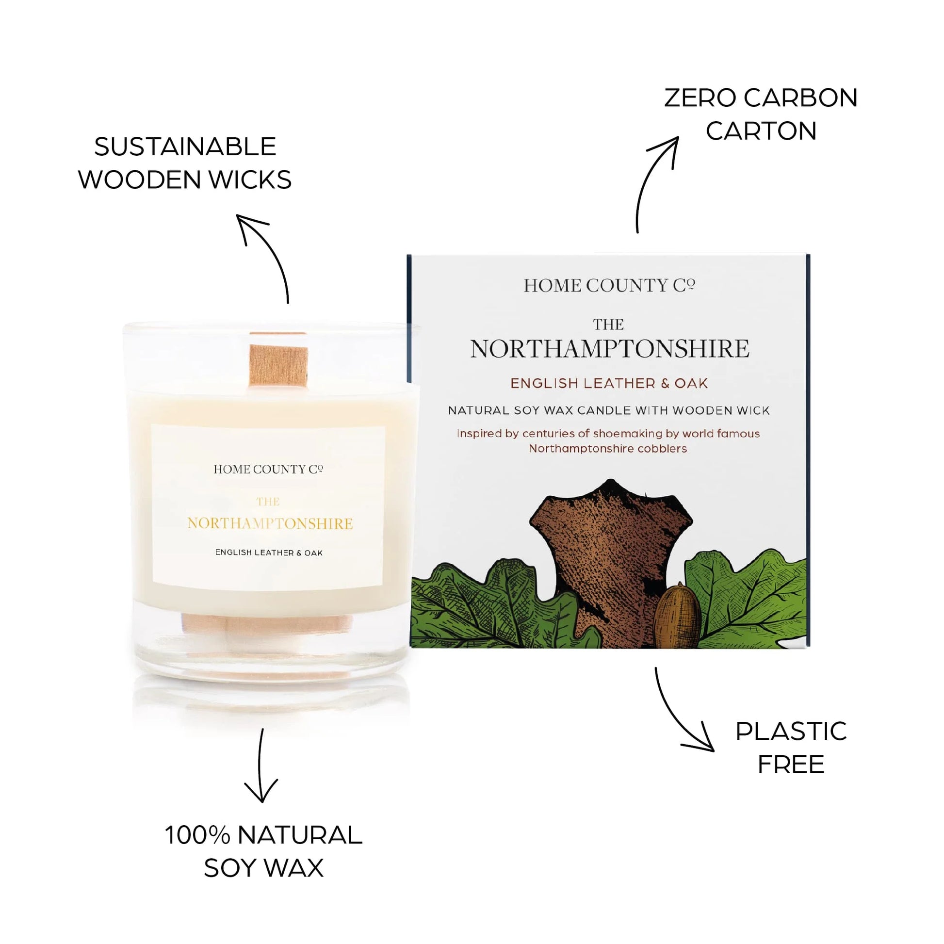 Experience the heritage of Northamptonshire industry and the cozy ambiance of traditional country pubs with The Northamptonshire Candle. With a blend of English leather and oak scents, this candle brings the atmosphere of aged leather shoemaking factories and flickering wood fires to your home. Masculine and inviting - perfect for any space.